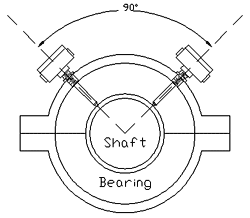 在更大,更關(guān)鍵的機(jī)器上,通常建議每個軸承使用兩(2)個接近探頭傳感器系統(tǒng)。此類安裝的探頭應(yīng)彼此分開90°安裝。由于探針將測量其各自平面中的振動,因此將測量軸頸軸承內(nèi)軸的總振動。當(dāng)兩個接近探頭傳感器都連接到SKF-CM信息系統(tǒng)或示波器時,可以看到兩個振動信號的“軌道”或笛卡爾乘積。