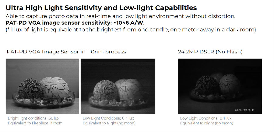 一個例子是SeeDevice的技術,稱為PAT-PD(光子輔助隧穿照片檢測器),該技術實際上是消除了傳感器所說的“光子泄漏”,該公司稱這種技術將可見光和近紅外照片功能結合在一起。聲稱的好處包括在減少運動失真,低光捕獲和動態(tài)范圍等領域超越了當今的傳感器。該公司已經在其網站上發(fā)布了幾張比較圖像,其中包括一張在極低光靜止圖像下勝過DSLR的圖像。
