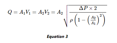 該方程將流體速度(V2)與壓差和管道尺寸相關(guān)聯(lián)。現(xiàn)在,我們可以將流體的體積流量(Q)計(jì)算為: