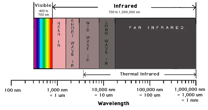圖 1.可見(jiàn)光和紅外光譜。圖片由 加州大學(xué)伯克利分校的Digital Earth Watch提供