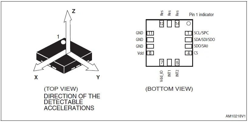 圖 3. STMicroelectronics MEMS 3 軸加速度計(jì)。圖片取自 LIS2DH 數(shù)據(jù)表。