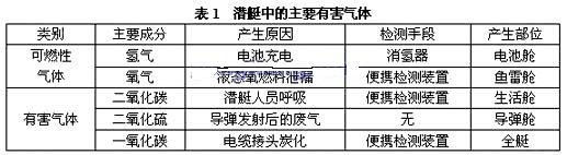 (2)加裝氣體傳感器。潛艇中大氣成份比較復(fù)雜,可檢測到數(shù)十種,如表1。潛艇的大氣監(jiān)測設(shè)備較少,沒有形成網(wǎng)絡(luò)化,導(dǎo)彈發(fā)射后的廢氣無設(shè)備監(jiān)測。為保證潛艇的安全和艇員的身體健康,可加裝智能氣體傳感器對上述氣體進(jìn)行監(jiān)測。