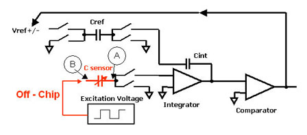 過去的電容分析系統(tǒng)需要比較大的測量電容和觸摸時(shí)的大電容變化。這種對足夠大變化的要求常常給傳感器制造商帶來麻煩,而較小的電容傳感器就不會出現(xiàn)這些問題。例如,典型的150pF濕敏傳感器不僅非常昂貴(因?yàn)樗鼈兊娜葜当容^大),而且更易于出錯(cuò)并且長期穩(wěn)定性也比較低。