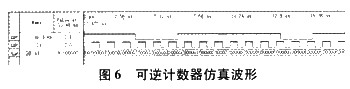 在波形圖中:clk信號是上一級電路的clkout信號,作為可逆計數(shù)器的時鐘;up_down是辨向信號,計數(shù)器的加運算和減運算由該信號控制,當up_down為高電平時計數(shù)器作加法,否則作減法。