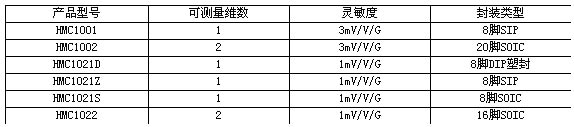 ●集成度高,片內(nèi)集成了霍尼威爾公司取得專利的置位/復(fù)位技術(shù),因而可以減少溫度漂移、非線性及在高磁場環(huán)境中對輸出信號造成的影響。而片內(nèi)偏置電路則可消除磁場失真的影響。HMC系列磁阻傳感器的主要型號如表1所列,圖1所示是其中6種型號的引腳排列和定義。
