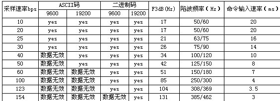 對于不同的輸出采樣速率,參數(shù)選擇也有所不同,表3所列為HMR2300的參數(shù)選擇表。
