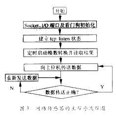 軟件系統(tǒng)的功能包括兩大部份:信號采集和網(wǎng)絡傳輸,主程序流程圖如圖3。