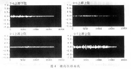 運行于橋頭服務器的上位機監(jiān)測軟件的開發(fā)平臺是NI公司的LabVIEW7.0,該軟件具有友好的用戶界面,可以把所有的采集數(shù)據(jù)存入數(shù)據(jù)庫,并可實現(xiàn)波形的顯示和分析。下面以橫向位移信號為例給出測量結果曲線(圖4)。