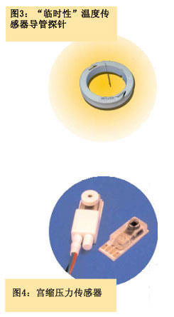 硅微機(jī)械壓力傳感器可用于宮縮壓力傳感器,來(lái)測(cè)量分娩期內(nèi)的子宮收縮壓力和收縮頻率(見(jiàn)右圖)。這種方法要比常規(guī)的束腹帶方法要更加可靠,且可在危急情況下使用。硅微機(jī)械壓力傳感器的另外一個(gè)特性是可以嵌入羊膜液注入和提取傳感器中。這些傳感器通過(guò)子宮插入,然后置于羊膜袋中。 當(dāng)小孩即將出生時(shí)再把傳感器取出來(lái)。這些傳感器都是一次性傳感器。