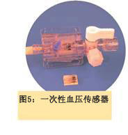 有幾類一次性傳感器是附在體外使用的,但是它們卻是和體液相接觸的。比如一次性血壓傳感器(DSP),(見(jiàn)圖5)。