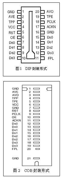FCD4B14有20腳DIP陶瓷或COB(Chip-on-Board)兩種封裝形式,如圖1和圖2所示。引腳功能如表1所示。