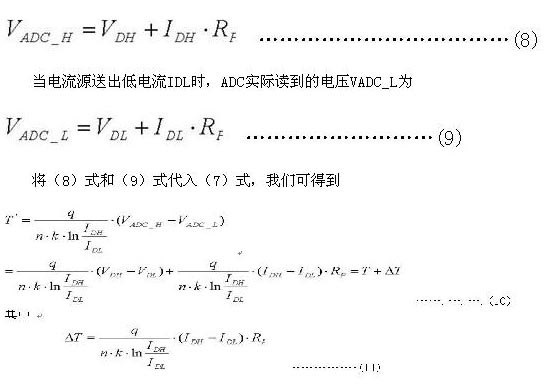 由于n、k和q為常數(shù),而IDH和IDL由溫度傳感器內(nèi)部產(chǎn)生,因此由VDH和VDL的變化量我們就可以測(cè)出溫度。