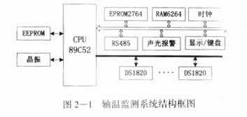 機車速度的提高和牽引功率的增大,機車與鋼軌之間的沖擊、動力效應和振動增大,必然會導致機車行走部分的軸箱軸承、牽引電機軸承、抱軸承和空心軸承的發(fā)熱增多。為了保障機車的高速安全運行,開發(fā)研制了基于數(shù)字式智能溫度傳感器的軸溫監(jiān)測系統(tǒng)。該系統(tǒng)可根據(jù)不同車型隨意增減測溫點數(shù),實時顯示各測點的溫度,超標時可聲光報警并記錄報警信息。