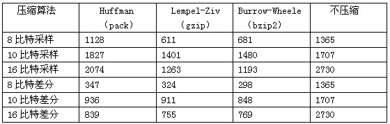 表1 幾種經(jīng)典壓縮算法對傳感數(shù)據(jù)的壓縮效果