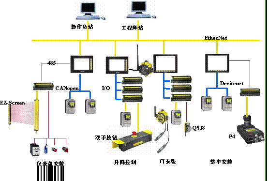 以下介紹典型的汽車(chē)應(yīng)用案例,汽車(chē)整車(chē)流水線(xiàn)上有多個(gè)應(yīng)用場(chǎng)合,沖壓車(chē)間中SHP控制能夠應(yīng)用到各生產(chǎn)環(huán)節(jié),實(shí)際應(yīng)用過(guò)程中,沖壓車(chē)間除用機(jī)械手以外,其他控制都用PLC。另外SHP控制器同時(shí)用于造車(chē)的焊裝車(chē)間,焊裝車(chē)間主要用于傳輸控制,一條生產(chǎn)線(xiàn)用5-8個(gè)SHP一體式控制器,如標(biāo)志206壓裝線(xiàn),采用分布式控制,每一個(gè)PLC控制一個(gè)小系統(tǒng),如物流生產(chǎn)線(xiàn)上的工位?傃b車(chē)間PLC主要用于輸送線(xiàn)控制,輸送線(xiàn)分三種:高架線(xiàn)、內(nèi)飾線(xiàn)和終裝線(xiàn)。高架線(xiàn)上PLC用于后軸和前軸的發(fā)動(dòng)機(jī)控制,終裝線(xiàn)用于進(jìn)行測(cè)試控制和各個(gè)工位的移動(dòng)控制。一般一段工藝(如終裝線(xiàn))用一個(gè)PLC,中型的在300IO左右,大的1000IO以上。