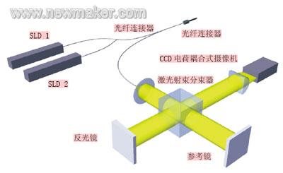 其主要部件為兩個(gè)相干性激光部件單元,其中的第一個(gè)是純光學(xué)的全光纖技術(shù)元件(SLD1),