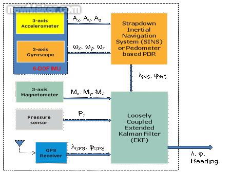 優(yōu)點(diǎn):GPS可以提供進(jìn)入建筑物前的初始方位;檢索地球偏轉(zhuǎn)角信息,根據(jù)地理前進(jìn)方向修正磁力計(jì)前進(jìn)方向;當(dāng)GPS信號(hào)增強(qiáng)時(shí)校準(zhǔn)計(jì)數(shù)器步長(zhǎng);分別向慣性導(dǎo)航系統(tǒng)的松耦合和緊耦合卡爾曼濾波算法提供有界的精確方位信息(經(jīng)緯度)輸出和偽距原始測(cè)量輸出。