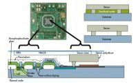 其它的MEMS加工技術(shù)有表面微加工。ADI是首個(gè)投資開發(fā)專有工藝去采用表面微加工工藝生產(chǎn)傳感器的公司。該公司的iMotion傳感器是采用沉積的薄膜材料在硅的頂部加工成形的。沉積的材料形成定義結(jié)構(gòu)層之間間隙的傳感器和犧牲層。信號(hào)處理電路可以在MEMS傳感器所在的同一晶圓上生成(圖2)!