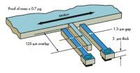 商用MEMS加速計(jì)的跨導(dǎo)機(jī)制采用壓阻或電容原理。在壓阻材料中,懸臂梁或隔膜所受的壓力的變化會(huì)導(dǎo)致產(chǎn)生張力和相應(yīng)的電阻變化;菟雇姌驕y(cè)量這種電阻變化,然后將其轉(zhuǎn)換成電壓。