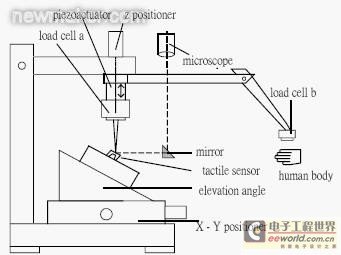 觸覺傳感器依型態(tài)分類,可分為接觸式及非接觸式兩種形式觸覺傳感器,所謂接觸指的是傳感器與人體之間接觸;壓阻、電容及壓電式觸覺傳感器屬于接觸式,光學(xué)與超音波觸覺傳感器屬于非接觸式。本研究針對接觸式觸覺傳感器,開發(fā)一套可以評估觸覺傳感器特性之微力量測校準(zhǔn)系統(tǒng),系統(tǒng)可以仿真人體力量變化,提供正向力或側(cè)向剪力之動態(tài)施力,完成接觸式觸覺傳感器驗(yàn)證工作,同時(shí)也可以于人體直接量測,與觸覺傳感器施力測試相互驗(yàn)證。