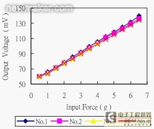 圖4. 壓阻觸覺傳感器之力與輸出電壓響應(yīng)關(guān)系