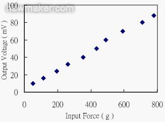 圖 7. 壓電觸覺傳感器之力與輸出電壓響應(yīng)關(guān)系