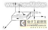 其厚度方向與Y軸平行。由于石英晶體具有壓電效應,當在Y方向加交變電場E2后,即在XY面內產生切應變S6,根據彈性力學方程,可求得石英晶體在空氣中的振蕩頻率。