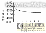 探頭剛放入水中時,差頻最大,而后逐漸減小,2min后穩(wěn)定在4100Hz,如圖6所示。這說明,傳感器從開始接觸液體到穩(wěn)定振蕩需要一定的時間。