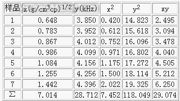 表中,x=(ρ1η1)1/2,y=Δf為差頻。