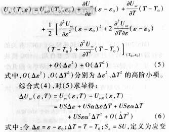 第三項、第四項及以后各項為溫度變化項,忽略掉ΔT的高階項,溫度與傳感器的輸出呈線性關(guān)系,令ST=USεα,定義為傳感器的溫度靈敏度。忽略掉高階項,式(6)又可寫為: