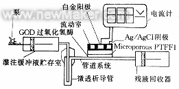 自60年代Clark發(fā)明葡萄糖氧化酶(GOD)——過(guò)氧化氫產(chǎn)物的酶電極、80年代證實(shí)皮下組織(S.C.)液的葡萄糖(G.S.)濃度與血的一致以來(lái)〔1〕,利用酶電極并從S.C.采樣以動(dòng)態(tài)監(jiān)測(cè)血糖的研究正在走向?qū)嵱秒A段。本文將所構(gòu)建的新的脈沖式微透析法葡萄糖傳感器系統(tǒng)及其體外特性、抗干擾能力和溫度特性的研究報(bào)道于下。