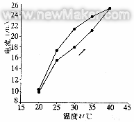 從圖4、5中可見(jiàn)在雙蒸水中,傳感器輸出電流隨溫度升高而增加,此種現(xiàn)象在10mMG.S.時(shí)更明顯,但同一溫度值時(shí)輸出電流值較接近。
