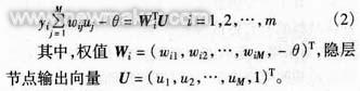 網(wǎng)絡的輸出yi為隱層節(jié)點輸出uj的線性組合,如式(2)所示。