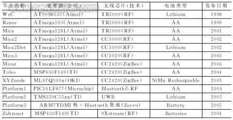 2、典型無(wú)線傳感器網(wǎng)絡(luò)節(jié)點(diǎn)比較