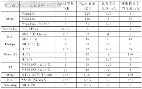 表2 各種常見(jiàn)的微控制器性能比較