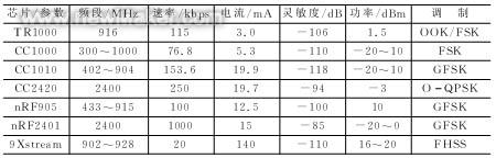 表4 常用無(wú)線芯片主要參數(shù)比較