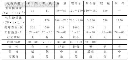 表5 常見(jiàn)電池的性能參數(shù)