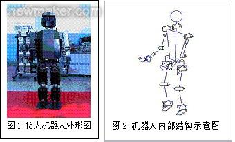 我們以國(guó)防科技大學(xué)機(jī)電工程與自動(dòng)化學(xué)院機(jī)器人教研室最新研制的新一代仿人步行機(jī)器人為研究對(duì)象(其外形如圖1所示)。該機(jī)器人高約1.55m,重約65kg,使用電池供電,無(wú)需外接電源和控制信號(hào)線(xiàn),可以實(shí)現(xiàn)無(wú)纜行走,還可以完成人的腿部、手部和頭部的一些基本動(dòng)作,已經(jīng)初步具備了人類(lèi)的外形特征。