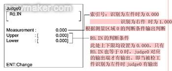同理,Judge1對應著另一個輸出端,為Judge1配置輸出條件。選擇的測量指標還是測量區(qū)域0發(fā)出的索引號即R0.IN。為這個測量指標設置一個判斷輸出的條件,如圖8所示。設置完成后,當被檢球頭銷被識別為右球頭銷時,Judge1對應的輸出端有輸出。