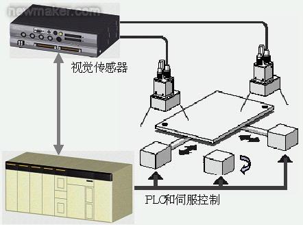 近幾年,由于中國(guó)產(chǎn)業(yè)的迅猛發(fā)展,包括亞州周邊地區(qū)在內(nèi)的產(chǎn)業(yè)配置正在逐步發(fā)生變化。特別是產(chǎn)品單價(jià)較低的商品,及價(jià)格競(jìng)爭(zhēng)較激烈的商品在中國(guó)國(guó)內(nèi)生產(chǎn)的比例越來越高了。從行業(yè)來說,主要有電子部件,用于電氣產(chǎn)品的基板或是FPD(Flat panel display)的生產(chǎn)等。隨著生產(chǎn)的開展,對(duì)中國(guó)國(guó)內(nèi)的生產(chǎn)設(shè)備的精度要求越來越高,需要增加伺服控制精度的需要也越來越多了。為達(dá)到上述高精度裝置的要求,在這里,就使用視覺傳感器實(shí)現(xiàn)高精度定位控制的案例之一進(jìn)行一下說明。在這個(gè)控制里面使用的機(jī)器,從傳感器,PLC(Programmable Logic controller),直到伺服控制,都為歐姆龍的商品。用一家公司的產(chǎn)品,就實(shí)現(xiàn)了整個(gè)系統(tǒng)的控制。