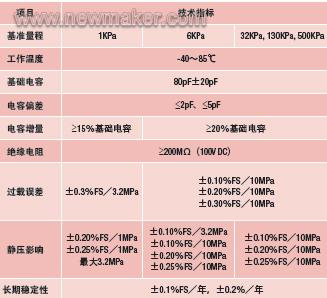 表2、硅電容壓力傳感器技術(shù)指標(biāo)