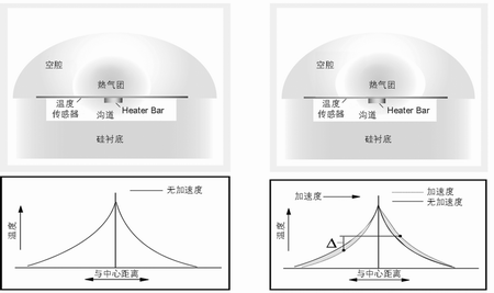 圖1 傳感器剖面圖及熱氣團(tuán) 圖2 傳感器剖面圖及熱氣團(tuán)