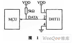 DHT11采用4針單排引腳封裝,電路連接方便,引腳說明如表1所列。