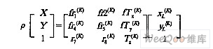 在第K個(gè)光平面上以O(shè)(K)L為原點(diǎn)建立直角坐標(biāo)系O(K)Lx(K)Ly(K)L,其它為攝像機(jī)模型結(jié)構(gòu)。則有點(diǎn)的象面坐標(biāo)與其在光平面坐標(biāo)的關(guān)系如下: