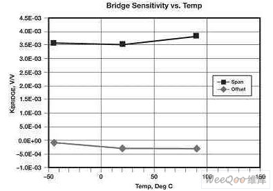 該傳感器仿真器還可以模擬溫度輸出信號(hào)。大多數(shù)傳感器內(nèi)置了簡(jiǎn)單的溫度傳感器以監(jiān)視橋傳感器溫度。前文已經(jīng)提及傳感器通常用二極管產(chǎn)生溫度信號(hào),或者使用橋電阻的溫度系數(shù)(the Rt method).