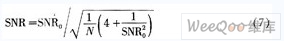在分析前,假設(shè)n1和n2是相互獨立的噪聲,它們都服從高斯分布。定義信噪比SNR為信號的均方根除以噪聲的均方根,設(shè)原信號Xn(i),Yn(j),的信噪比均為SNR0,根據(jù)高斯分布的獨立性,式(6)的信噪比為