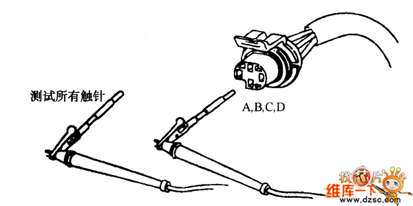 圖3 測量A、B、C、D端子與連接器中所有其他端子間電阻