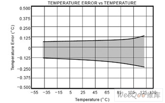圖2 TMP275溫度誤差與溫度對應(yīng)關(guān)系的典型性能曲線