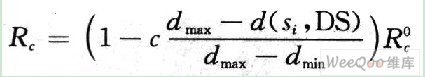 靠近基站的候選簇首的競爭半徑應(yīng)該較小。隨著候選簇首到基站距離的減小,其競爭半徑亦應(yīng)隨之減小。設(shè)候選簇首的競爭半徑的最大取值為R0c。其中,c用于控制取值范圍的參數(shù),在0~1之間取值。候選簇首si確定其競爭半徑Rc的計算公式如下:
