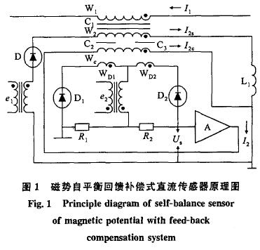 磁勢自平衡回饋補償式直流傳感器原理如圖1